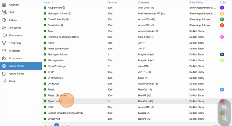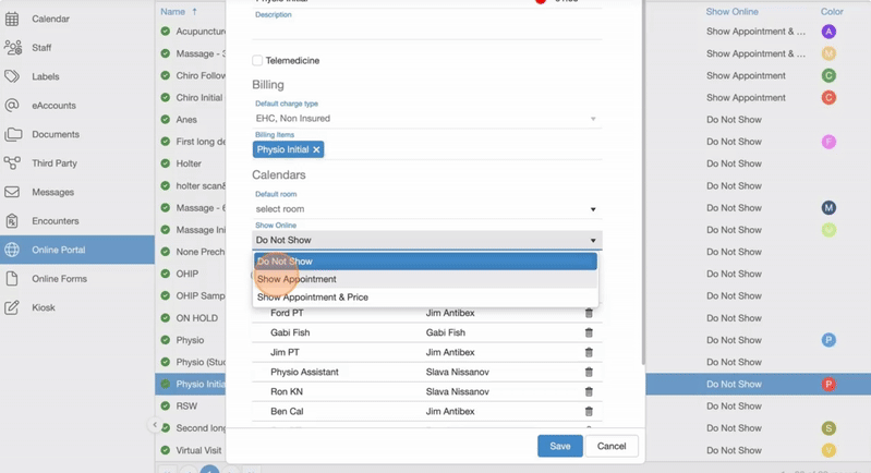 15. Select an appointment type and double click Edit