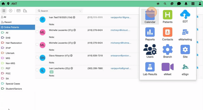 Click “Online Patients”