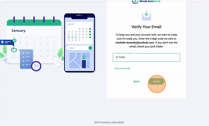 36. You’ll receive an email from “noreply@walnutemr.com” containing a 6-digit verification code.
