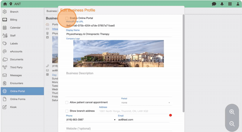 4. Check Enable Online Portal
