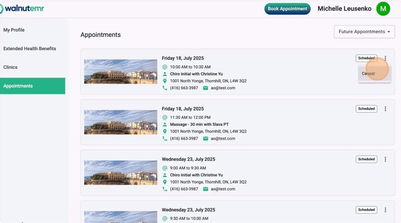 40. Once your booking is confirmed, youâll be able to view your scheduled appointments and access additional profile settings. Click ‘View My Appointment’ to be taken to your patient profile. Patients can access their account anytime by visiting patient.walnutemr.app/